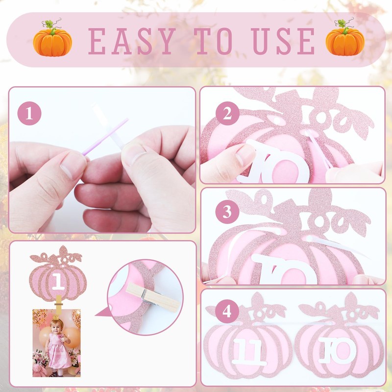 - 【Record Good Moments】:This pink pumpkin photo banner is perfect for baby's birthday, fall first birthday, Halloween themed first birthday or Thanksgiving party decorations.