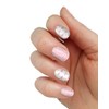 These are water-slide decals, so you just trim them, soak them in water to separate the decal from the backing paper, slide them onto your nail and then position them, then add a clear topcoat. They work best with lighter polish and French manicures.