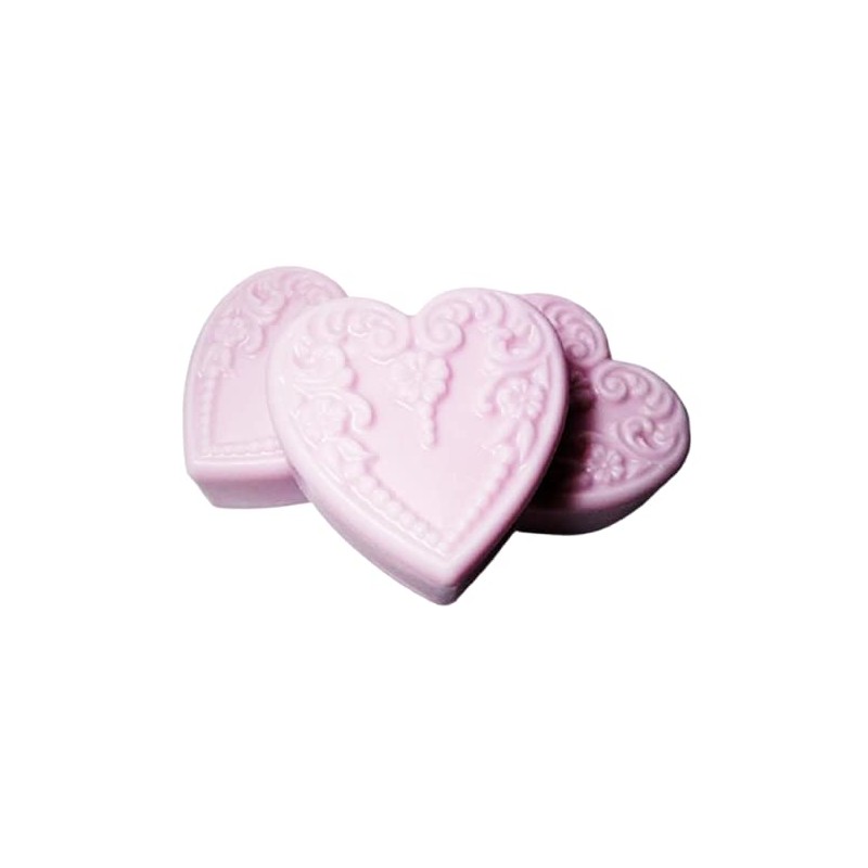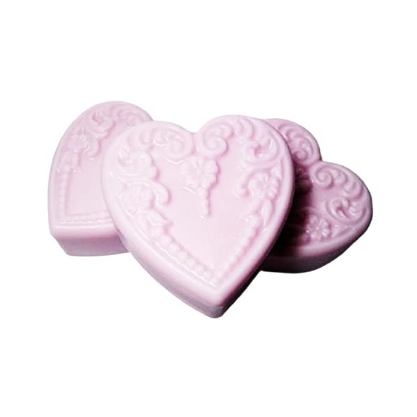 This beautifully boxed set will have 5 assorted designs of medium sized (for bath or sink) fancy heart shaped soaps in our popular goatmilk & shea butter blend (super moisturizing).