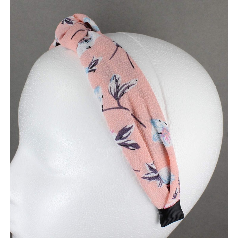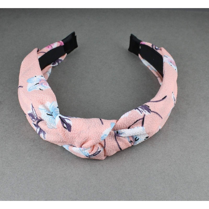 Pink flower headband Turban Knot knotted floral fabric covered grip teeth twist hair accessory