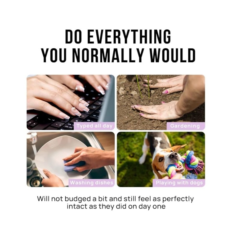 • 【3 IN 1 INNOVATIVE FRENCH STYLE】Three-layer Innovative Technology(Primer+Soft Gel+X Matte Coat)simplify your manicure steps. Gel press on nails are all french design, multi-nail type for you to choose. Gel nails can be trimmed, filed, or worn to your liking. They hold up well even if you use your hands for everything , all day