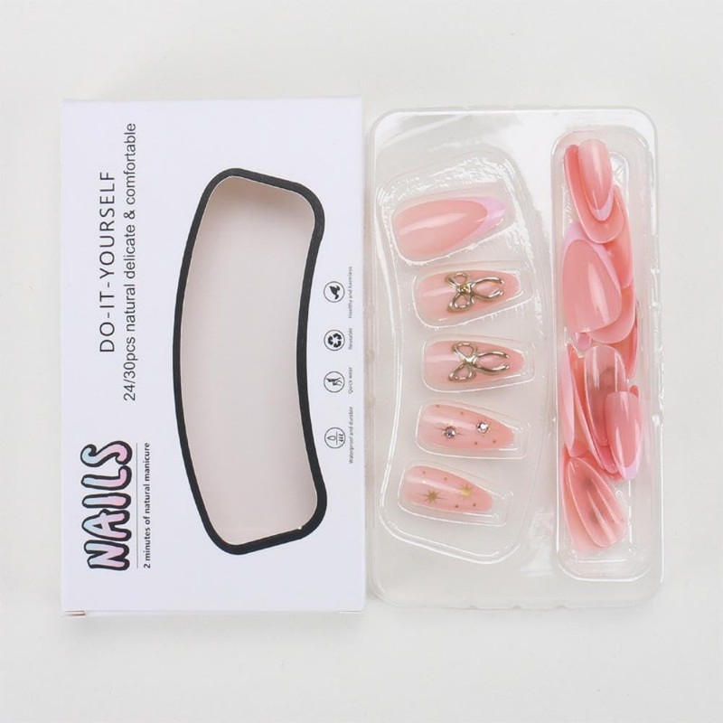 - Easy to Use:Choose the suitable stars false nails, polish the nail bed, paste the jelly glue, press the fashion nail art in 30 seconds, and create the nail art that girls like. If the gold bows glue on nails size is not suitable, it can be polished to the size of the nail cap with a friction tool. They are easy to apply and remove. No special nail polish remover is required; only hot water is needed