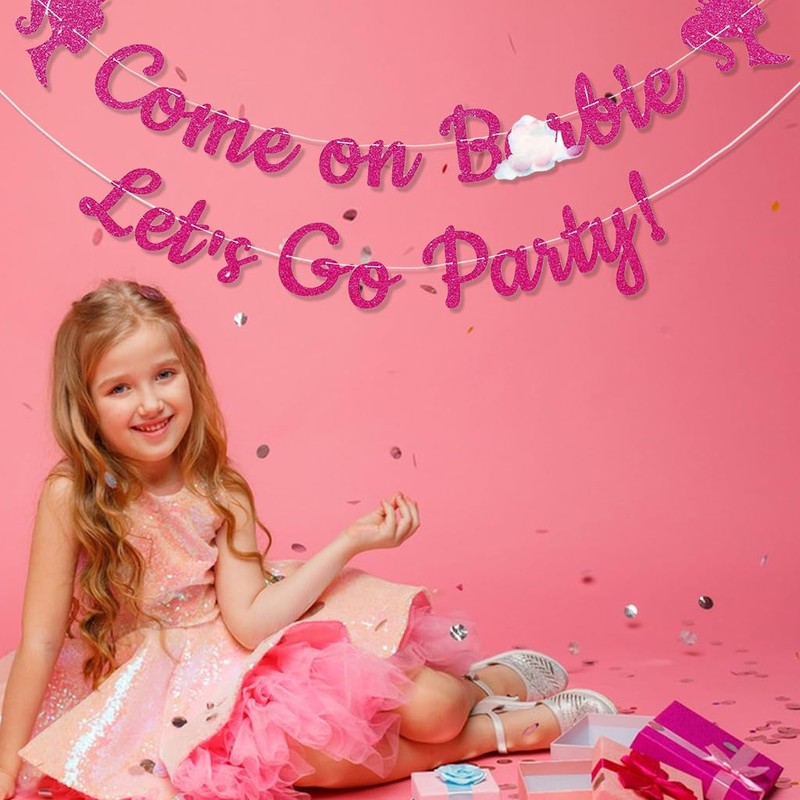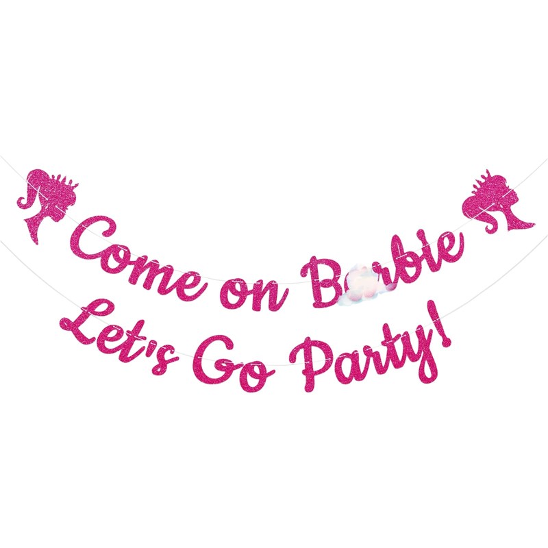 - ★Barbie themed party banner: You will receive the "Come on Ba*bie, Let's Go Party Banner!" letter banner and two girls wearing crowns banner in pink glitter texture for a very high class feel.