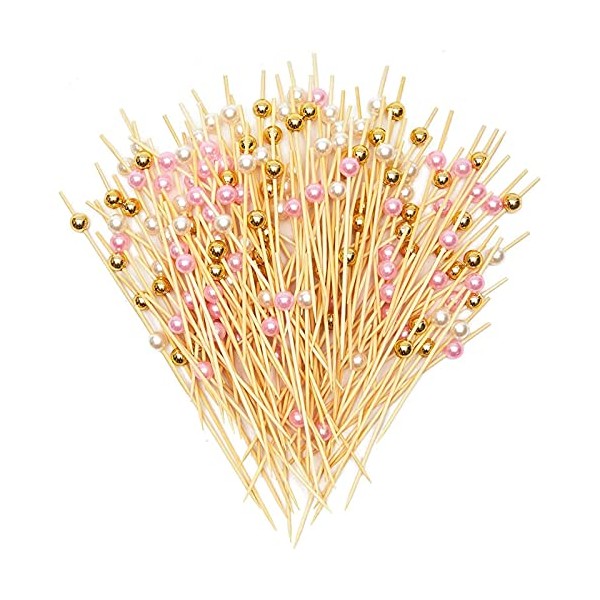 - WHAT'S INCLUDED: Comes with 150 bamboo appetizer picks with pink pearl, gold, and white ornaments