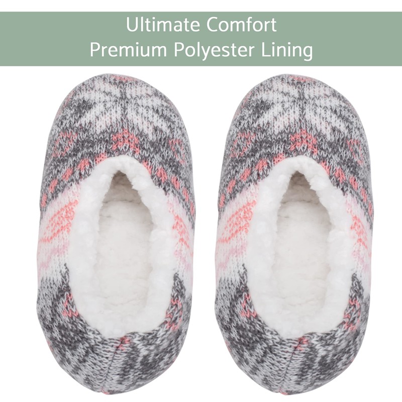 Pink Grey Nordic Snow Womens Plush Lined Cozy Non Slip Indoor Soft Slippers - Medium