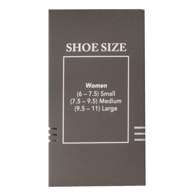 - Ladies size scale: Small (Shoe Size 6-7.5), Medium (Shoe size 7.5-9.5), Large (Shoe Size 9.5-11)