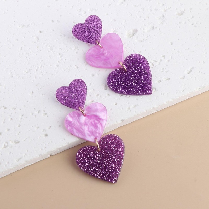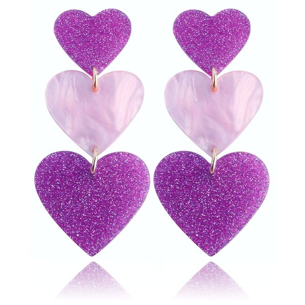 Pink Heart Earrings for Women Dangle,Pink Outfits Accessories for Women,Red Love Heart Earrings-Purple