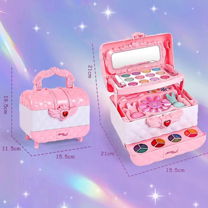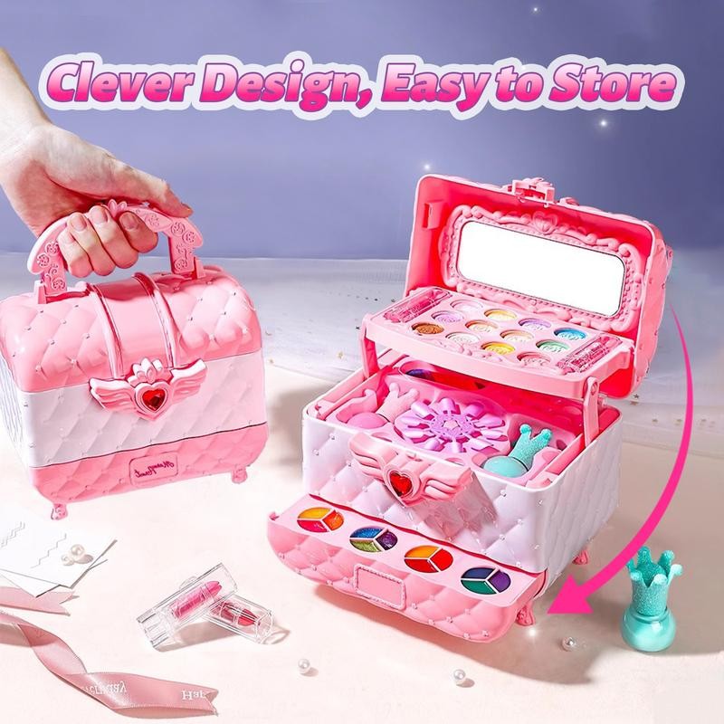 Safe & Non-Toxic Washable Makeup Toys for Girls: Kids makeup kit for girl is non-toxic, safe and washable.Kids makeup kit toys for girls have passed the American toy safety test.The size of the kids makeup kit for girl is also designed according to the size suitable for little girls. The makeup toy set for girl are made of safe, water-soluble materials that can be washed off with soap and water, mild material, no preservatives, no burden on the child's skin,please rest assured to use them.