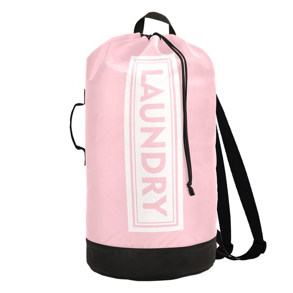 Pink Laundry Backpack Large Heavy Duty Laundry Bag with Adjustable Shoulder Straps Laundry backpack for Traveling Dirty Clothes Organizer for College Students Waterproof