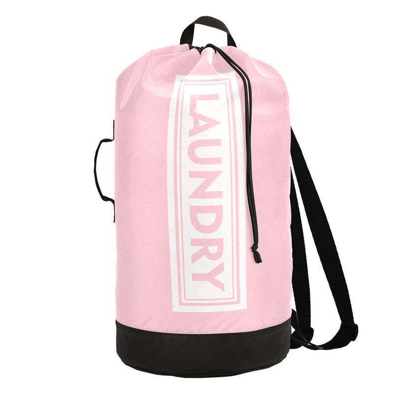Sinestour's extra large Cherry blossom pink Laundry Backpack is a tough replacement for laundry baskets, bins or buckets.
