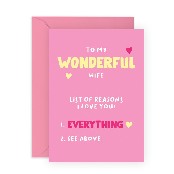 Pink Love Card for Her - 'Wonderful Wife List Why' - Gifts for Spouse, Babe, Hun, Other Half, Darling, Mrs - Valentines Day Present for Women- Comes with Fun Stickers