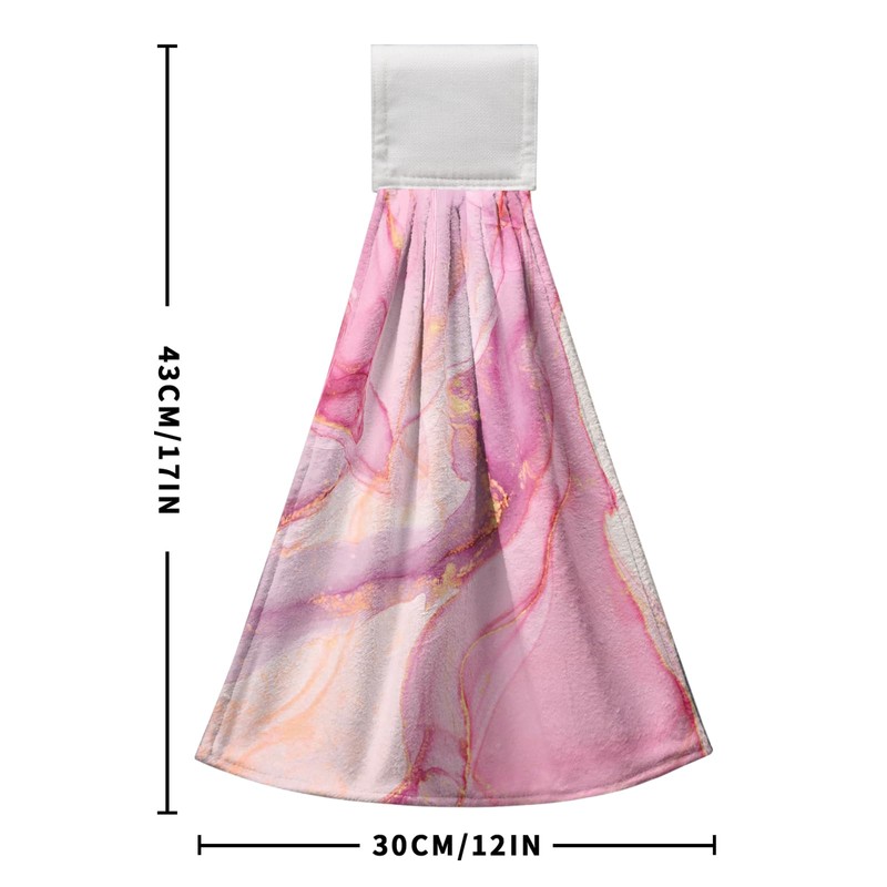 - SIZE AND MATERIAL: The size of our pink marble hanging kitchen towel is 17 x 12 inch. These hand towel, made of premium quality polyester, soft, comfortable durable and strong absorbent, not easy to fade