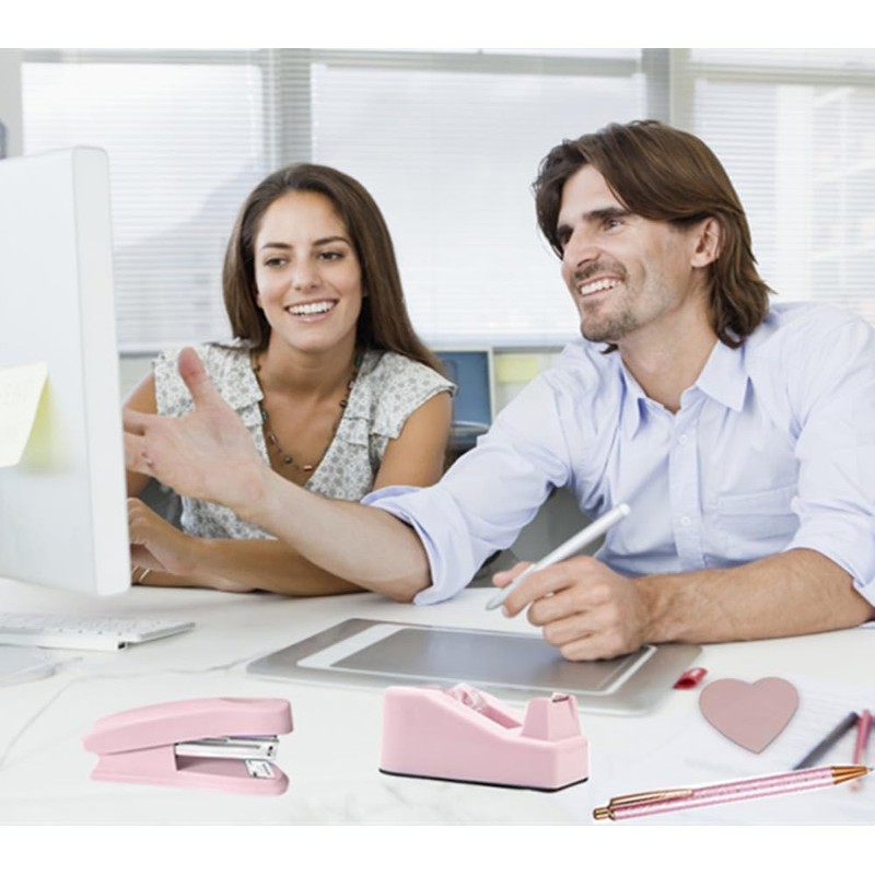 - Packing Listing: 1x pink stapler, 1000 x 24/6 26/6 staples, 1x staple remover, 1 x pink tape dispenser, 1 x black ink ballpoint pen, 1 x office scissors, 1x heart shaped pink sticky notes(100 sheets);1x retractable teap measure(150cm/60in),20 x Push pins, 7 x Big Clips, 15 x Small Clips, 30 x Paper Clips, 1x clear adhesive tape. This light pink office supplies and accessories set is a rich combination idea to meet your needs in daily life, study and work.