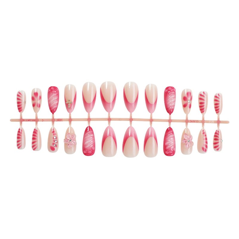 - Nail Kit Included:You will receive 24pcs medium almond press on nails,1 sheet of jelly adhesive tabs,1mini nail file and 1 wooden stick for removing nail tips. Easy to make summer press on nails