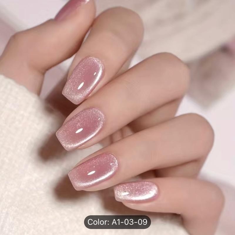 Pink Press On Nails Short Square Fake Nails Bling Cat Eye Glitter Design False Nails Handmade Gel Nails Acrylic Full Cover Nails 24pcs Nail Art Nail Care Nail Polish Polish Pack Cutics Manicure Cosmetic
