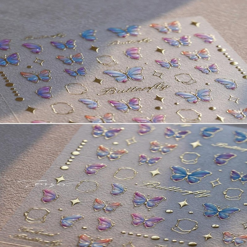 - Exquisite Design:Our pink purple butterfly nail decals combine a variety of popular patterns,allowing you to create salon-quality manicures at home. You can also use these elegant nail stickers for wedding bride nail art design