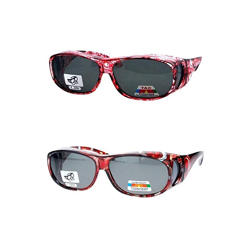 Pink Ribbon Shades 2 Pair Polarized Fit Over Oval Rectangular Sunglasses - Large -Light Red/Red