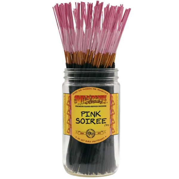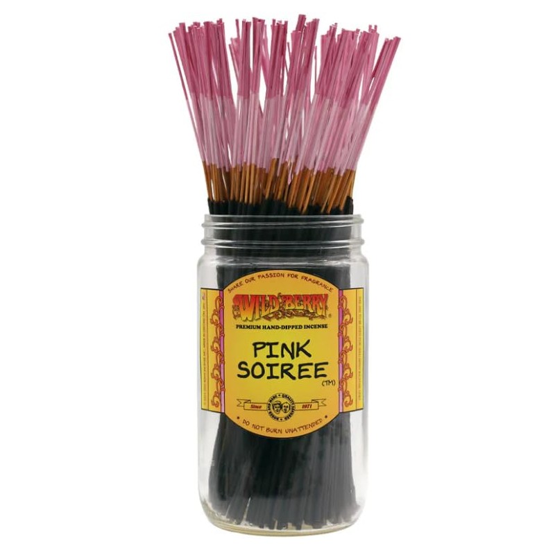 Pink Soiree Wildberry Incense Sticks- 12 Sticks- Incense A joyful cocktail of strawberry and citrus fizz unveils a complex blend of wild violet, lily and sweetened with a soireé of tonka, vanilla and pink cotton candy. Base Color: Pink Accent Color: Pink Paint Length: Long Fragrance Family: Fruits, Foodlike