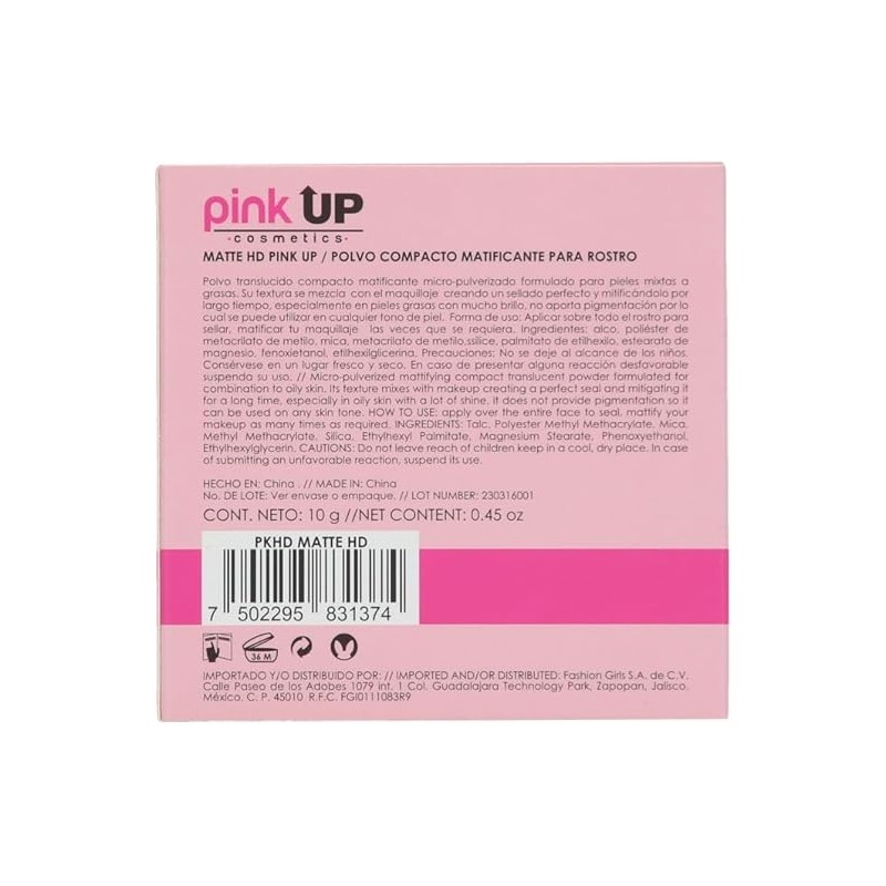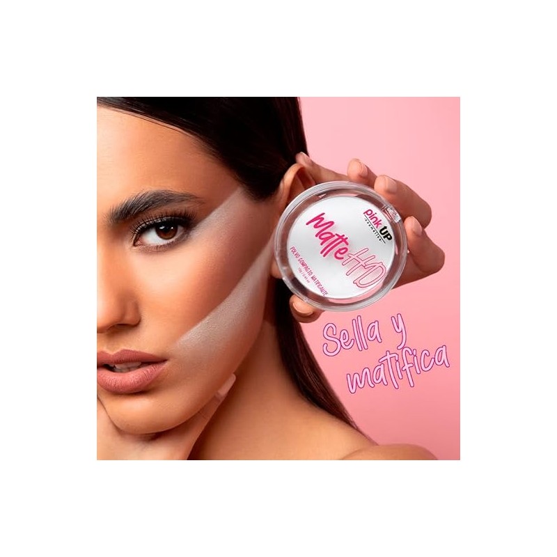 PINK UP, Matte HD, Polvo Compacto HD, Matificante, Para Pieles Mixtas, Controla el brillo en la piel del rostro, Modelo PKHD