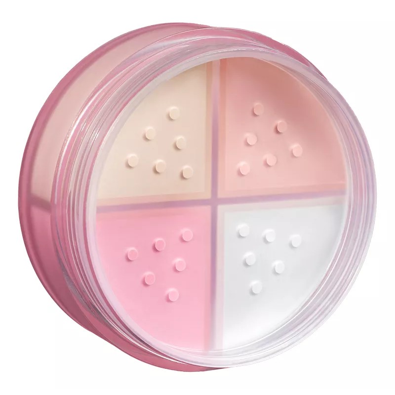 Con sus 4 tonalidades beige, blanco y dos tonos de rosa fijan tu maquillaje.