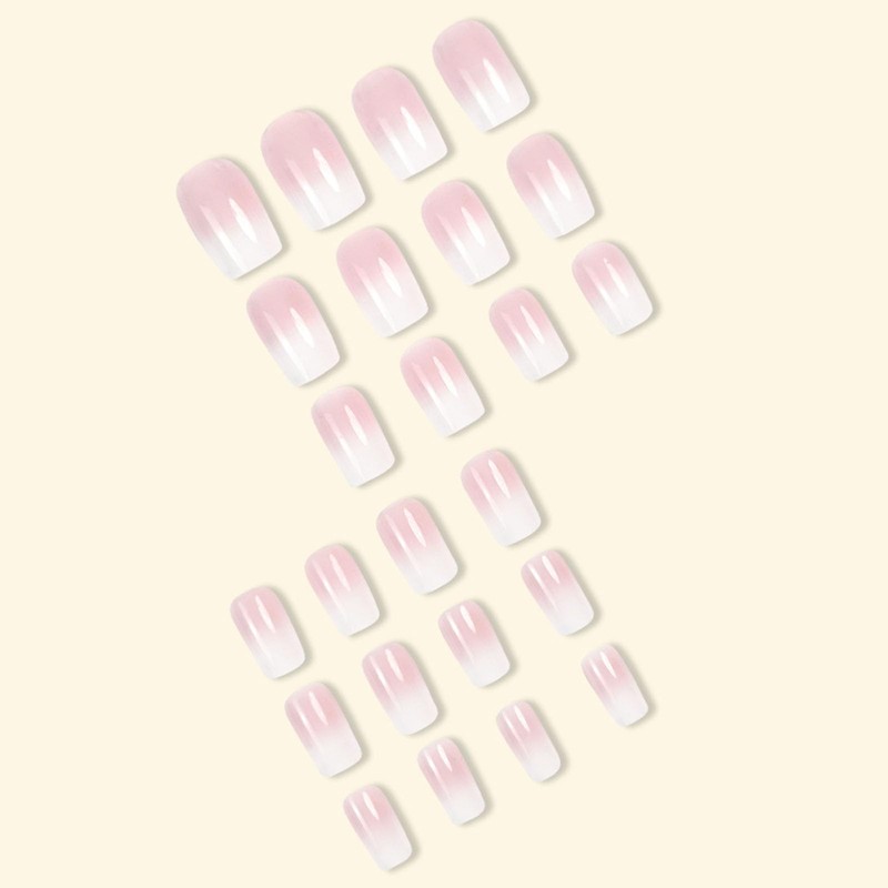 Pink White Ombre Press on Nails Meidium Fake Nails Square Acrylic Nails Press...