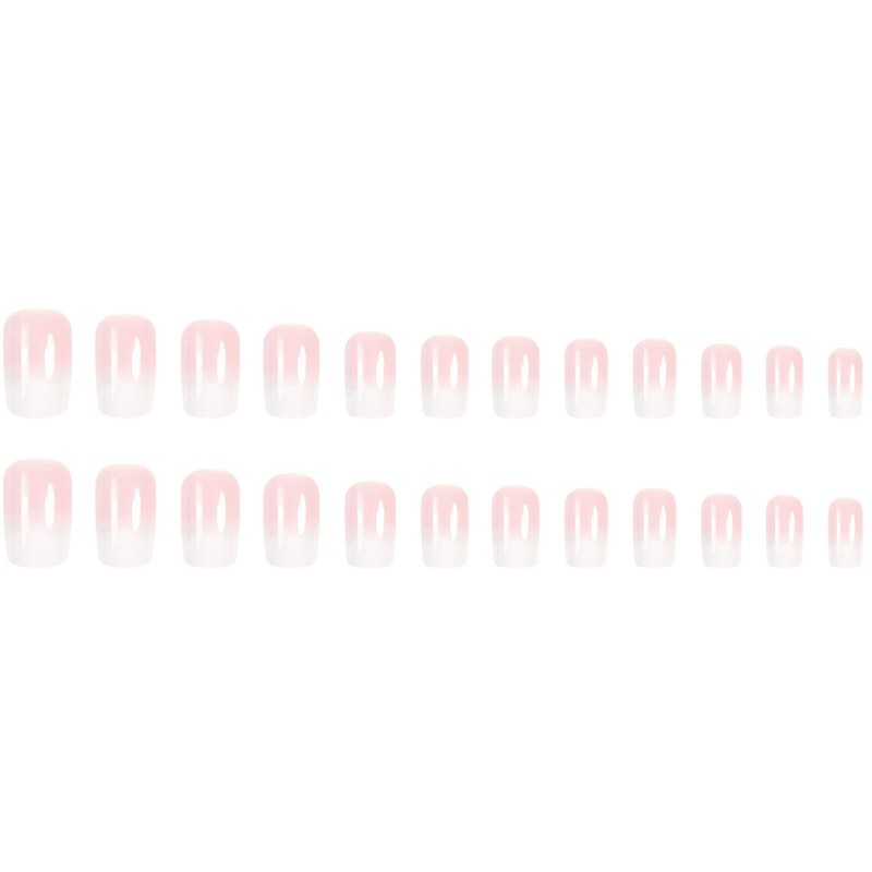 Pink White Ombre Press on Nails Meidium Fake Nails Square Acrylic Nails Press ons Gradient French False Nails Full Cover Glue on Nails Glossy Stick on Nails for Women 24 Pcs