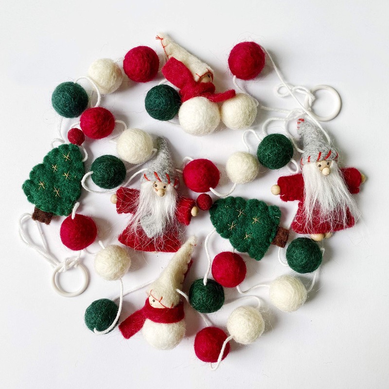 - High quality: Each felt ball and wool Christmas ornament is hand-sewn on a string to move as you like. Loops are included on each end of the garland for easy hanging