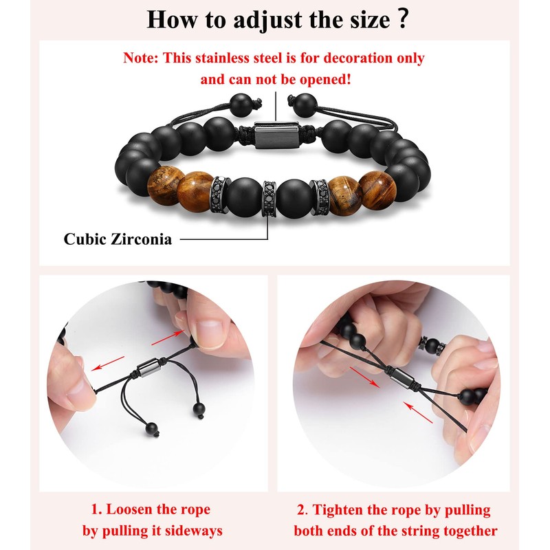 - 【Suitable Size】-- Come with sliding knot closure, it can be adjusted from 5.5 "to 11". Tighten or loosen the bracelets by pulling the knot easily to fit the wrists of most men and boys.