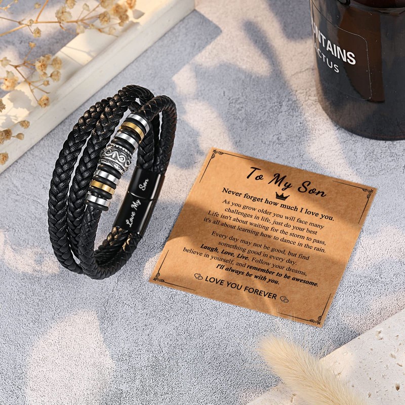 - SON GIFTS FROM MOM: A cool bracelet comes with an encoragement card. All of the above items are nicely packaged in jewelry bags. As a meaningful gift for birthday, Christmas, Valentine's day, graduation and every big day!
