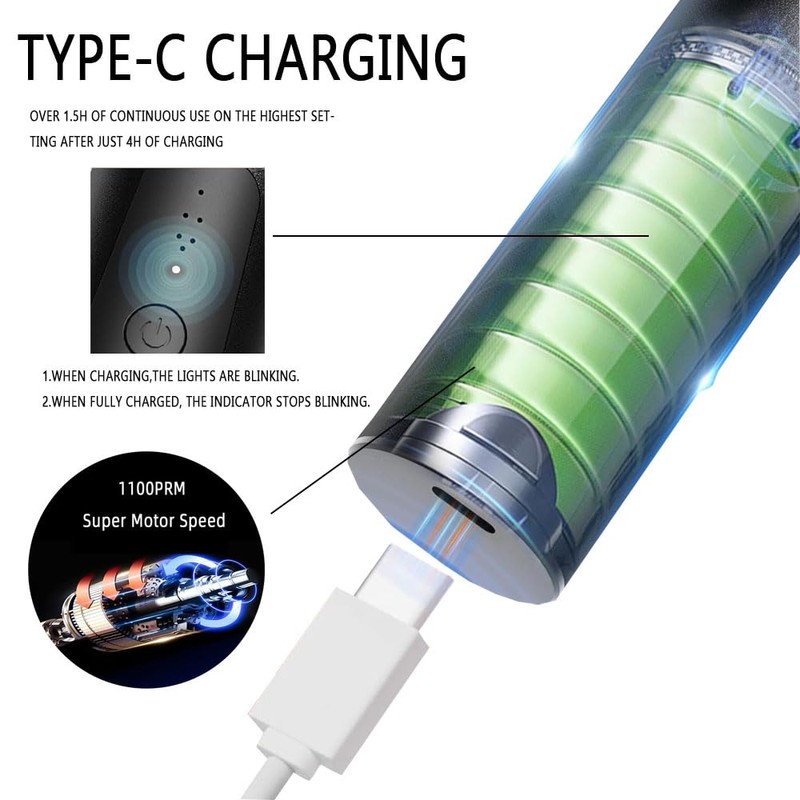 - WIRELESS DESIGN WITH USB CHARGING: This electric callus remover is compact, portable and rechargeable. It uses a 1200 mAh lithium battery that allows a service life of 1.5 hours. It can also be used in continuous operation while plugged in. The wireless design is charged via the Type-C port and features a USB charging indicator.