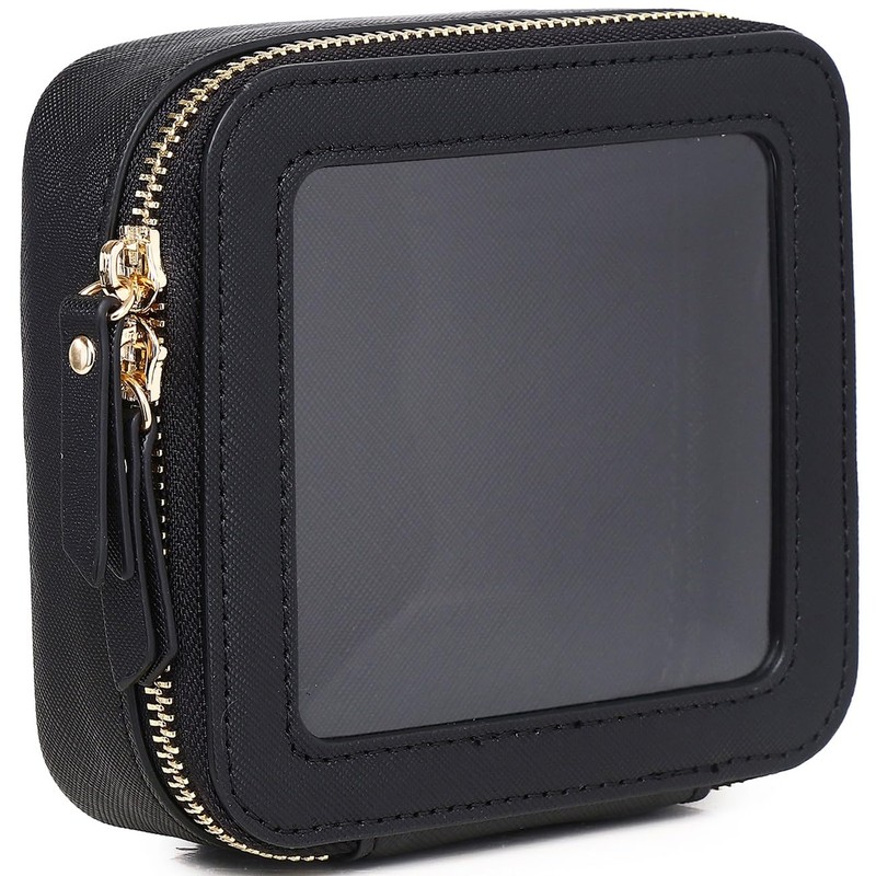 Pinkmik Clear Makeup Bag Portable Brush Bag Transparent Travel Cosmetic Case Clear Toiletry Makeup Bag with Zipper for Women (C/Black, Mini)