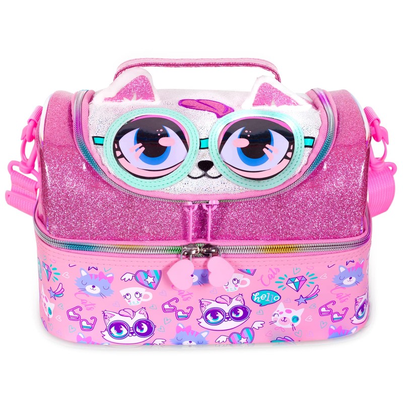 PinkSheep Kids Double Decker Cooler Insulated Lunch Bag Large Tote for Boys, Girls, Men, Women, with Adjustable Strap, Cat