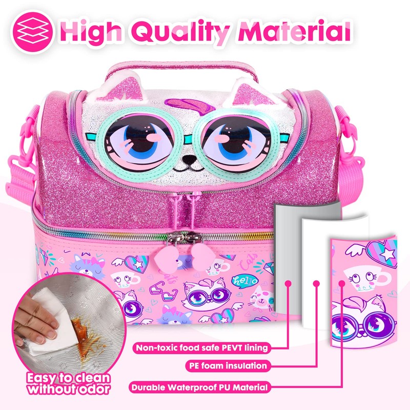 • Creative 3D Cartoon Design - 3D Cat Lunch Bag, paints every child's colorful dream, adding more interest for kids, which make your child love to take it out and let your children enjoy lunch happily. Great gift for kids who back to school or school office supplies.