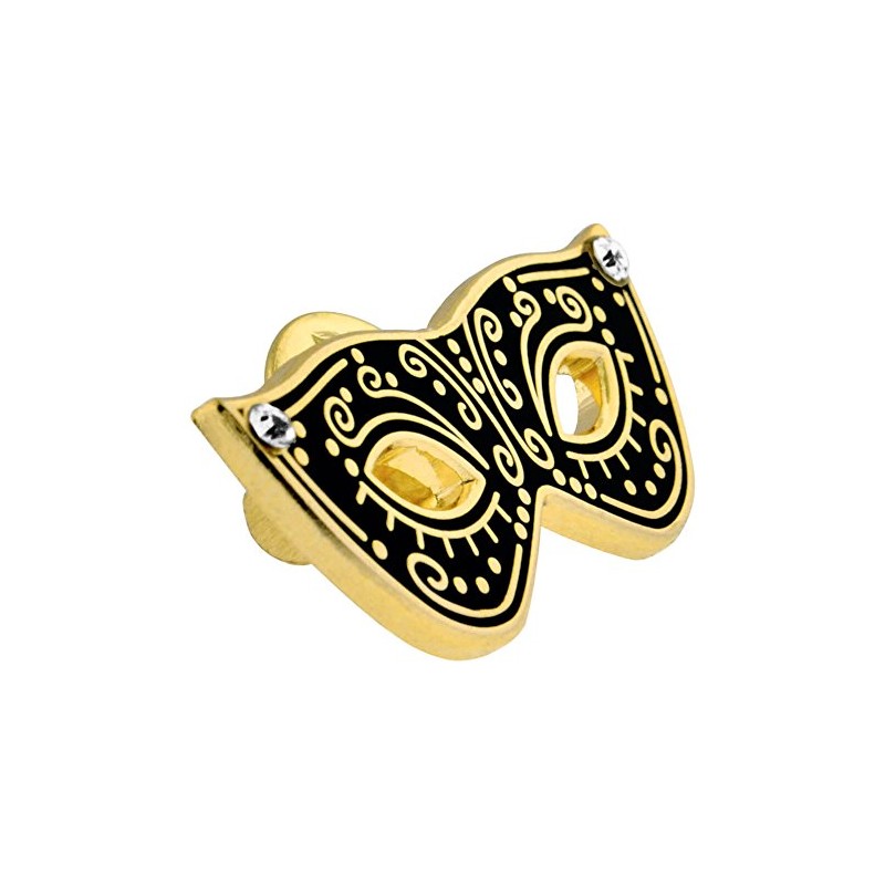 • Feeling exotic and adventurous? Our Masquerade Pin will help you express yourself. This is beautifully detailed and the perfect accessory for any celebration. Our Masquerade Pin is die struck, soft enamel color filled, gold plated with fine detail and has two rhinestones elegantly placed on each end. It includes a standard clutch back and comes individually poly bagged.