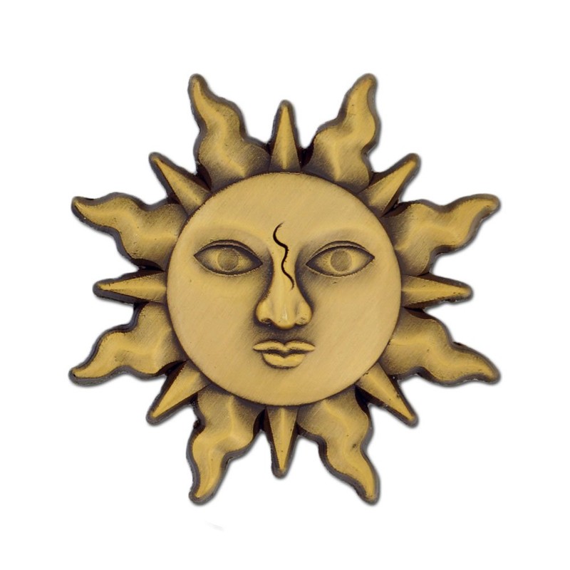 - This Celestial Sun Lapel Pin has a unique design symbolizing a God of the universe beyond. Our pin would make an out of this world gift for a special group of individuals who "Rise Above" and deserve recognition. It is a 3D cast from select jeweler's metal, antique gold plating having a creative relief and polished to a smooth finish.