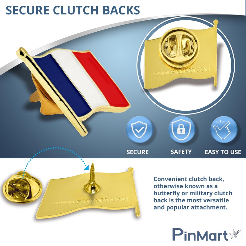 - DURABILITY: Crafted from durable metal with rich enamel colors and a secure clutch backing, this country flag pin lasts long while making a bold statement wherever worn.