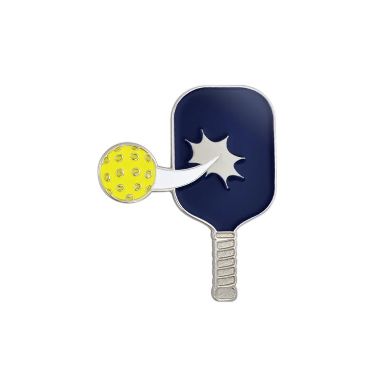 - Introducing our striking Pickleball Paddle Pin! Crafted with precision, this lapel pin features a captivating design of a pickleball paddle with a ball bouncing off it.