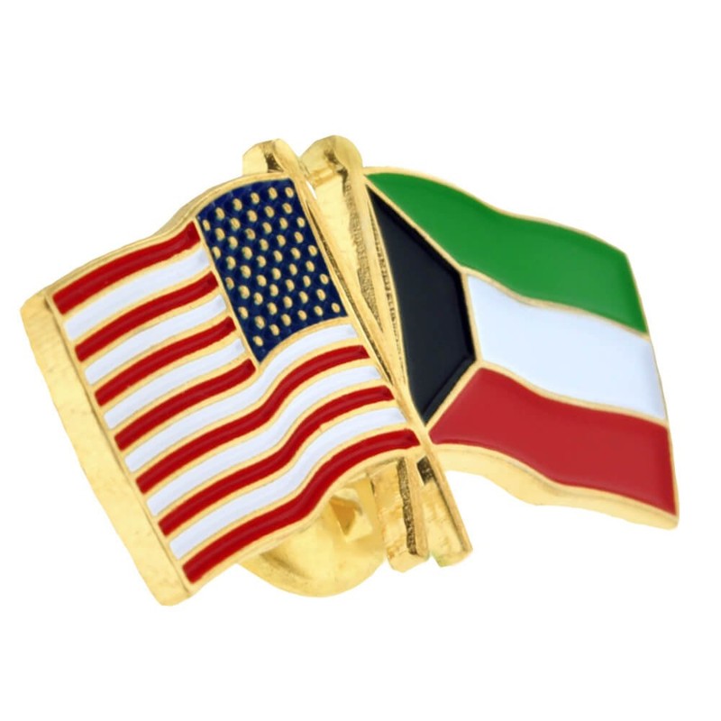 - High-quality enamel lapel pin featuring the flags of Kuwait and the United States in a symbolic and traditional method sometimes referred to as a friendship flag