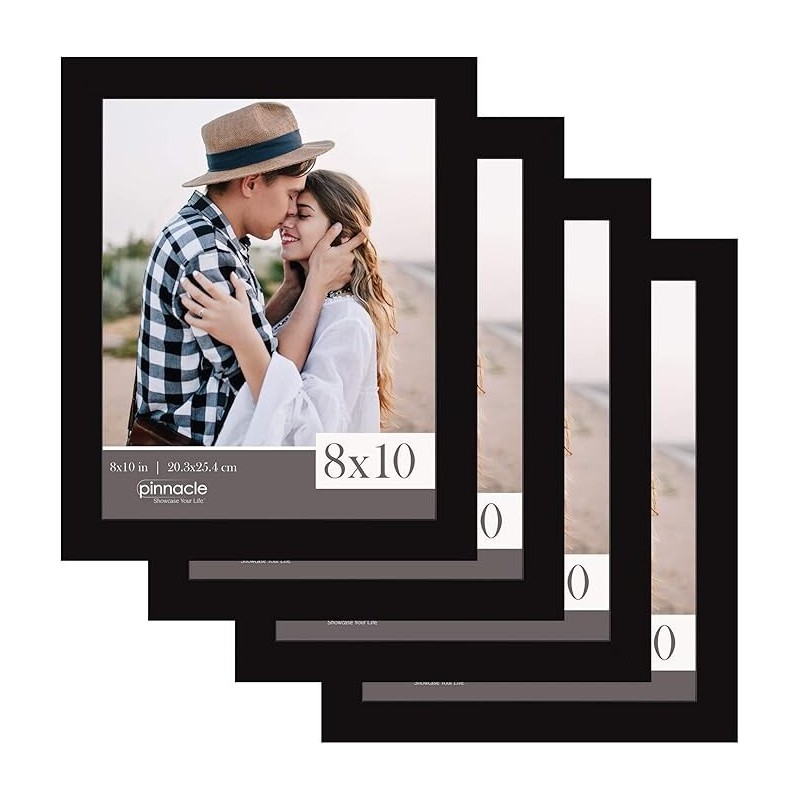 Pinnacle Frames & Accents Classic, Set of 4 Picture Frame Set, 8" x 10", Black