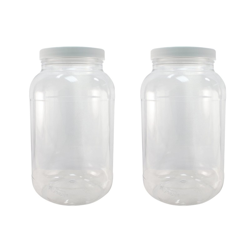 A perfect solution for organizing any area in your home or shop. Our 1 gallon (128 ounces) by liquid measurement clear plastic jars are clear as glass but are lighter in weight than glass jars and are impact resistant. Our lids feature a foam liner, which helps protect against odors and will not impact the taste of any food items you store. They are made out of Polypropylene (PP) and feature ribbing on the sides for easy opening. PET plastic does not have a high-temperature resistance, less than 120 degrees so they are not dishwasher safe or microwave safe. But they can be placed in the freezer up to -30 degrees. The recycle code for PET plastic 1. The diameter of the jars is 6 inches, with a height of 10 1/8 inches with the lid on. We shrink wrap these to protect them. Plus, both the jars and caps are made in the USA. In fact, 95% of the products Pinnacle Mercantile sells are made in the USA.