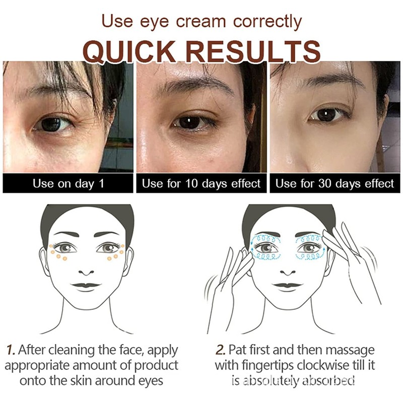 • Quick and Visible Results: Our eye cream delivers fast-acting and visible results, reducing the appearance of dark circles and puffiness, and leaving your skin looking smoother and more radiant