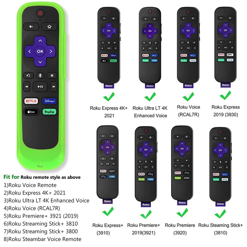 - [COMPATIBILITY] - The slim case was compatible with Most Roku Remotes: suitable for Roku Express 4K+ 2021, Roku Voice (RCAL7R), Roku Premiere+ 3921 (2019), Roku Streaming Stick+ 3810, Roku Streaming Stick+ 3800 remote controller, Roku express, Roku streaming stick, official Roku voice remote, Roku Simple Remote, Roku premiere, Roku 2, Roku 3 and Roku 4 (NOT for Ultra / Pro, no headphone jack hole).
