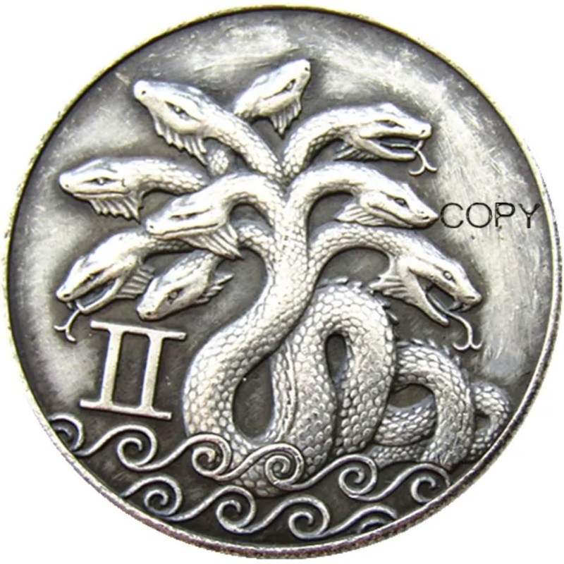 Pinstant Lernaean Hydra of Lerna Many Snake Heads Heracles Hercules Greek Roman Mythology Myth Copy U.S Hobo Morgan Coin Silver Plated Replica Commemorative