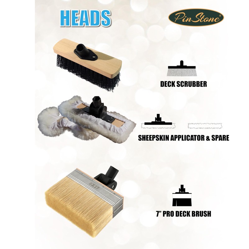 - 【All-In-One Deck Staining Set】13 Pack includes 1 x 7" Adjustable deck stain brush, 1 x 9" Adjustable lambskin applicator with 2 refill pads, 1 x 9" Scrub brush, 1 x 10" Paint tray with a liner, 1 x 2-3ft Extension pole, 2 x Sandpapers, 1 x Trim brush, 1 x Paint stirrer, 1 x Can opener. Works great right out of the box for staining decks, wood, concrete, masonry and more.