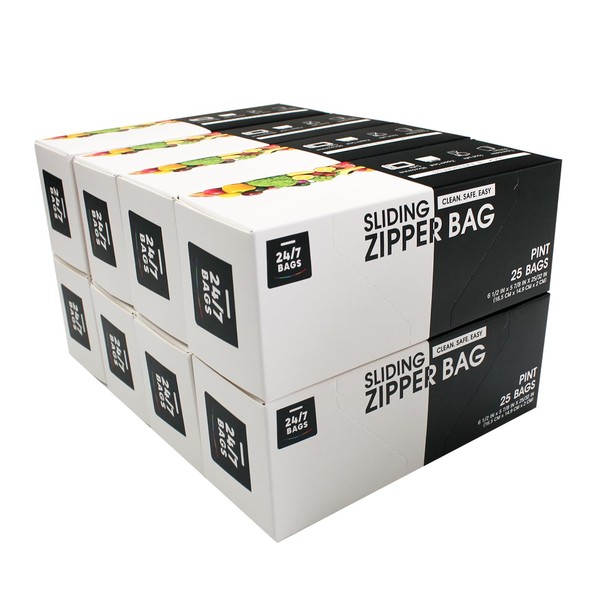 Pint Slider Storage Bags- 200 Count, Featuring Expandable Bottom, Zero BPA, Microwave-Safe(8 boxes of 25)