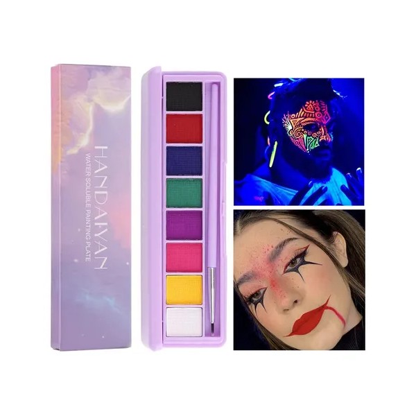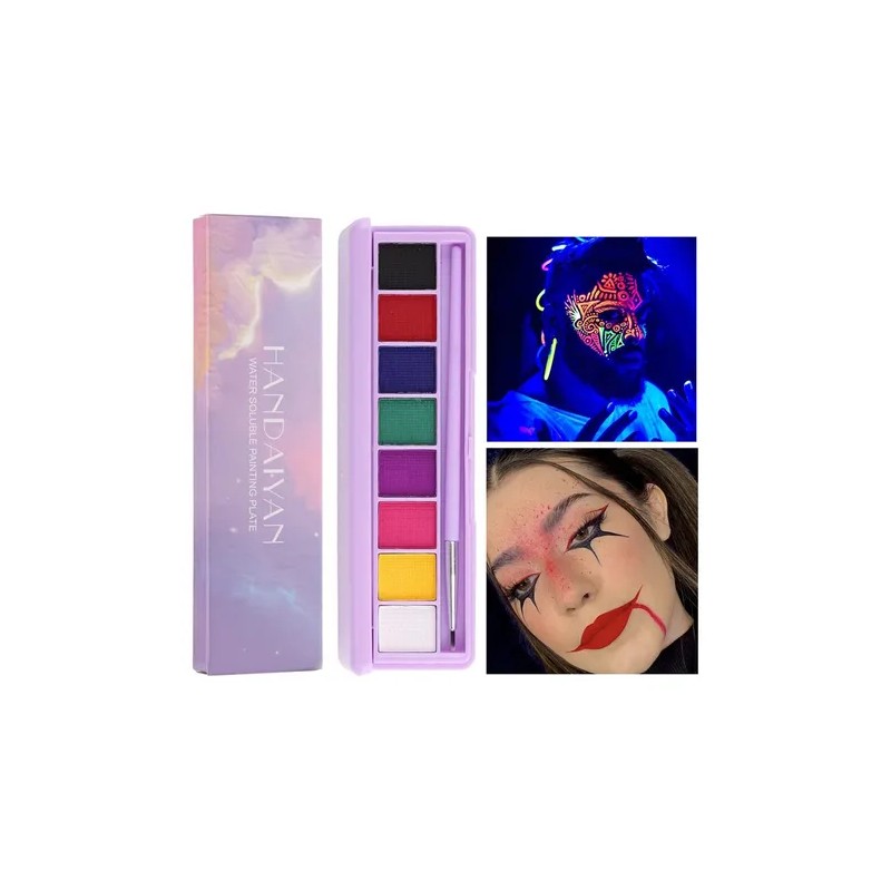 Pintura negra blanca neón multifuncional esta popular paleta de revestimiento de hidra activada por agua se puede utilizar de forma múltiple, como la pintura corporal de la cara del delineador de ojos. Disponible en 8 colores, puede mezclar colores y crear sus propios tonos únicos. Fluorescente de alta calidad los pigmentos y tu propio diseño de bricolaje pueden hacerte único entre la multitud.