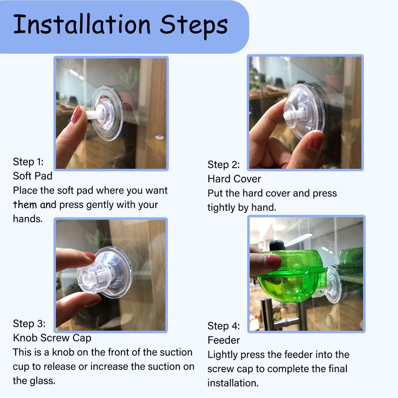 - ✔Easy To Install And Clean:Solid construction,stable to hang on the wall of the tank,save space.Each bowl has a knob to release or increase the suction on the glass,in order to achieve the best adsorption effect,please install it according to the schematic diagram.The smooth surface is easy to clean.