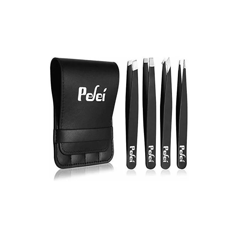 MULTIFUNCIÓN - Juego 4 en 1, este juego contiene un par de pinzas inclinadas clásicas, inclinadas, puntiagudas y puntiagudas. La elección perfecta para manejar una variedad de trabajos. DISEÑO Y MATERIAL: este juego de pinzas duraderas está hecho de acero inoxidable n. 420 El acero inoxidable de la más alta calidad para un rendimiento duradero IDEAL PARA VIAJES O REGALOS: viene completo en un elegante estuche que es perfecto para regalar o viajar. TENSIÓN PERFECTAMENTE CALIBRADA: diseñada para eliminar los vellos encarnados y las astillas con facilidad. ALTA CALIDAD: se compone de cuatro pinzas funcionales diferentes combinadas en un fino cuero de viaje