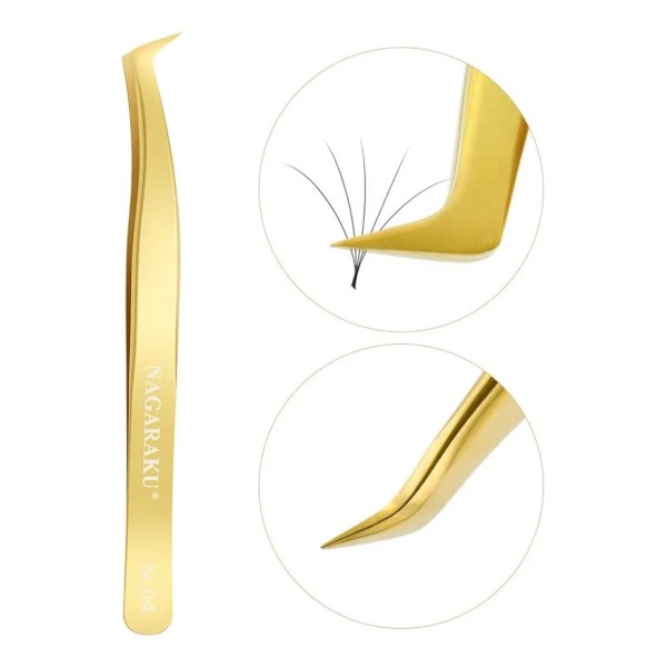 ⭐️ Pinzas Nagaraku N-04 para Extensiones de Pestañas - ¡Maestría en Volumen con un Toque de Oro! ✨