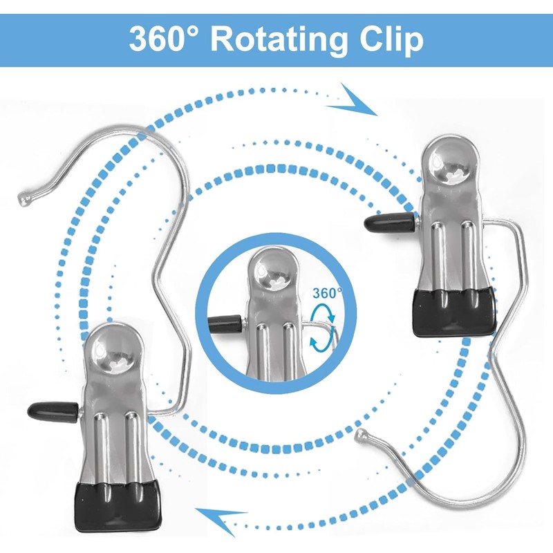 - 【Función de rotación flexible】Los clips para botas cuentan con un diseño giratorio de 360 grados, lo que los hace más flexibles para colgar y exhibir objetos. Ya sea para secar, colgar o exhibir tus objetos favoritos, puedes encontrar fácilmente la posición ideal y usarlos en cualquier barra.